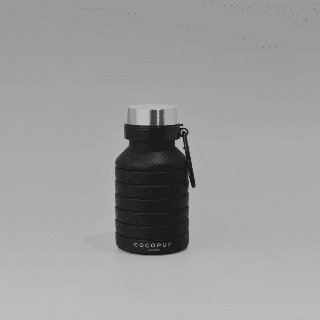 Dites adieu à la difficulté de mettre vos bouteilles dans votre sac et bonjour à la bouteille d’eau pliable noire.