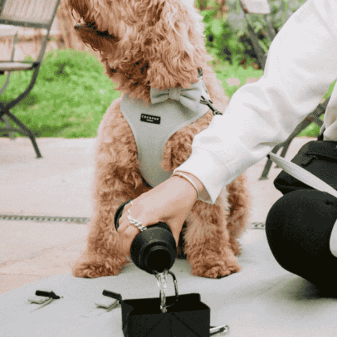 Notre nouveau biberon se replie pour atteindre une taille compacte, ce qui vous permet de vous rassasier et de vous réhydrater, vous et votre chiot, peu importe où vos walkies vous emmènent.