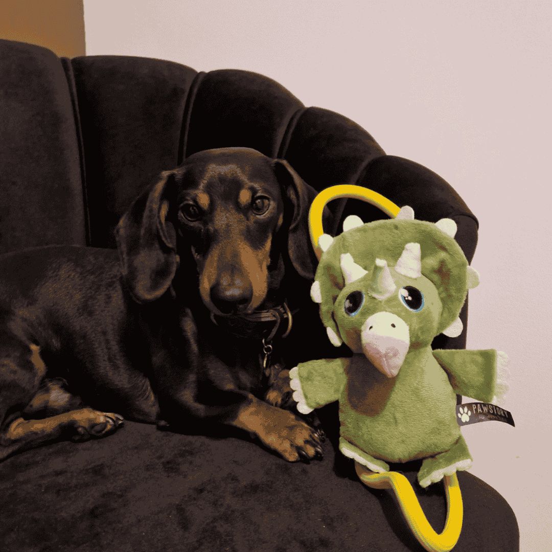 Découvrez PawStory Buddies et collectionnez-les tous. Jouez avec style avec Timmie Triceratops ! Ce jouet associe la douceur d’une peluche à la robustesse d’une corde, ce qui le rend parfait à la fois pour le câliner et pour le tirer. Faites passer un bon moment préhistorique à votre chien.