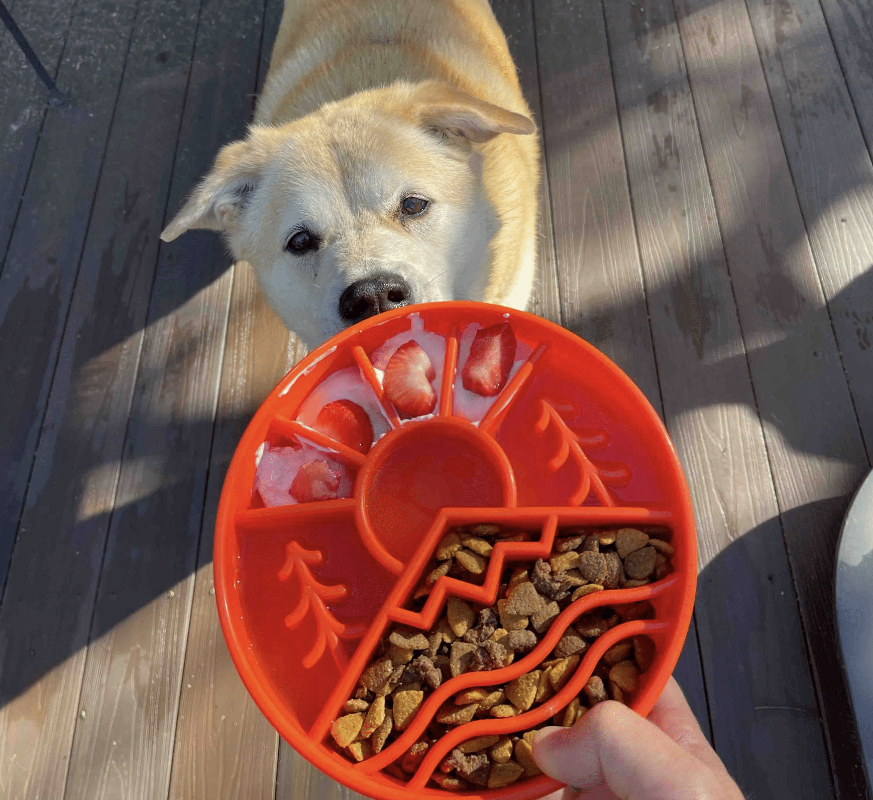 Remplissez la gamelle d’enrichissement Montagne de Sodapup avec la nourriture préférée de votre chien. Répartissez les croquettes ou étalez les pâtées dans les recoins de la gamelle pour maximiser l’effet d’enrichissement. Supervisez votre chien lors des premières utilisations pour vous assurer qu’il s’adapte bien à la nouvelle gamelle.