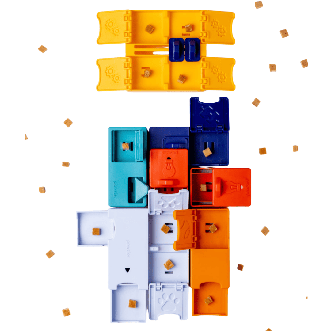 Cet ensemble comprend des pauzzles de niveau 3, offrant l’expérience de puzzle la plus complexe et la plus gratifiante de notre gamme. Chaque ensemble Genius comprend au moins une base qui tient les pawzles, avec des mécanismes avancés tels que des curseurs à plusieurs étapes, des verrous rotatifs et des compartiments superposés – tous conçus pour pousser les compétences de résolution de problèmes de votre chien à la limite.