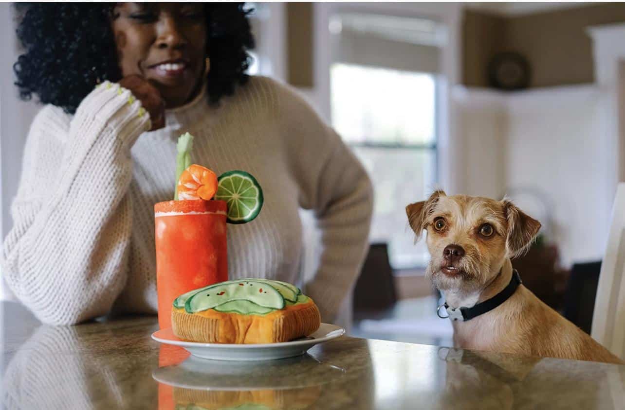 La peluche pour chien en forme de Avocado Toast 🥑 de la collection Barking Brunch de Pet Play couine légèrement pour stimuler votre chien pendant le jeu. Le papier sonore à l’intérieur stimulera votre chien pour des heures et des heures.