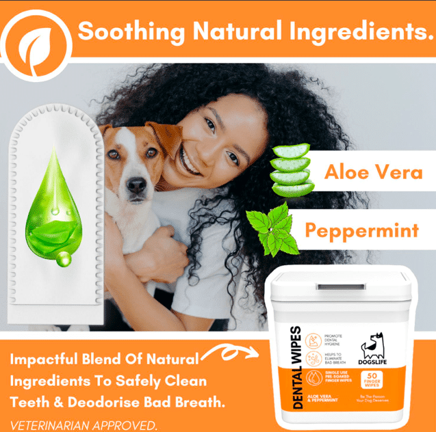 Formule naturelle d’aloe vera et de menthe poivrée ! Chaque lingette dentaire est pré-imprégnée d’aloe vera et de menthe poivrée pour désodoriser naturellement la mauvaise haleine du chien et éliminer le tartre et la plaque.