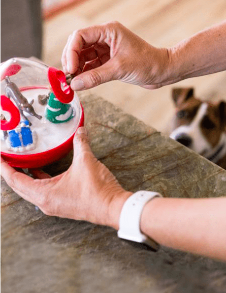 Votre chien adore jeu. Il n’y a rien de plus excitant que lorsque les friandises font partie du jeu !